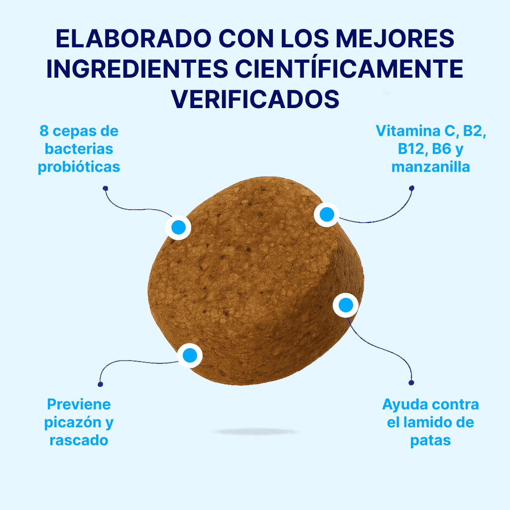 Científicamente creado para combatir el picor, apoyar la salud intestinal y la función general del sistema inmunológico